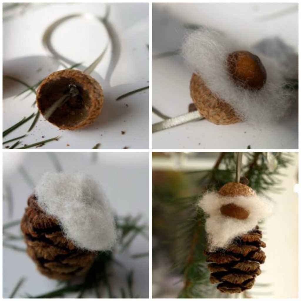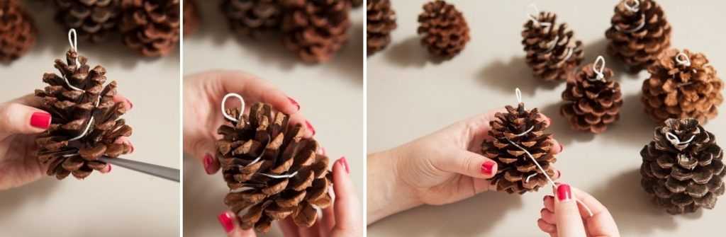6. Проделайте то же самое с остальными шишками и вуаля – самодельные игрушки на елку из шишек готовы!