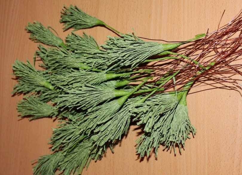 - сосновые лапки разных размеров (от самых маленьких до 70-80 см в длину). Наломать их можно в любом лесу без вреда для деревьев, ведь нижние ярусы всё равно со временем высохнут и отпадут. Почему сосна? При высыхании веток она почти не сыплется, а те иголки, которые потом попадут на ковер, легко убираются с помощью пылесоса или вручную;