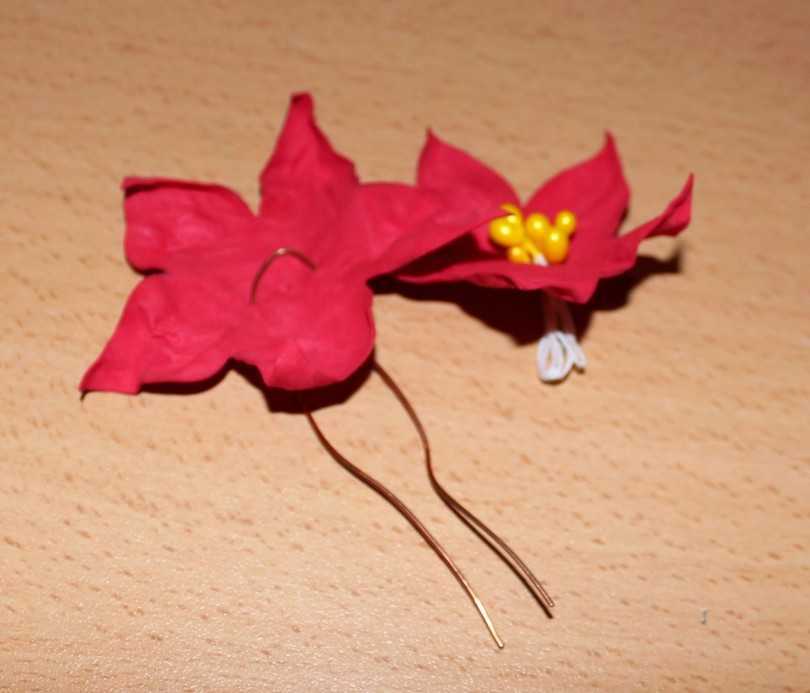 В макушку осторожно вставьте проволоку и закрепите ее клеевым пистолетом