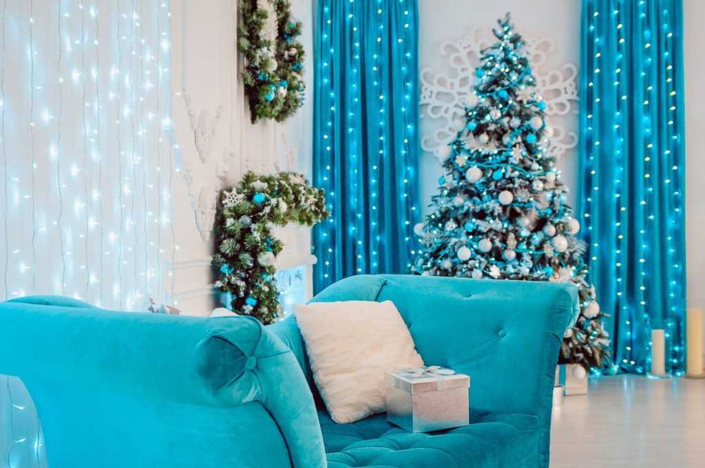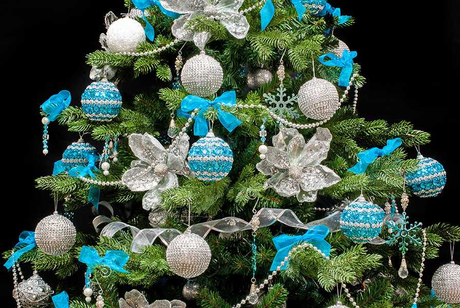 Красивая елка наряженная голубая