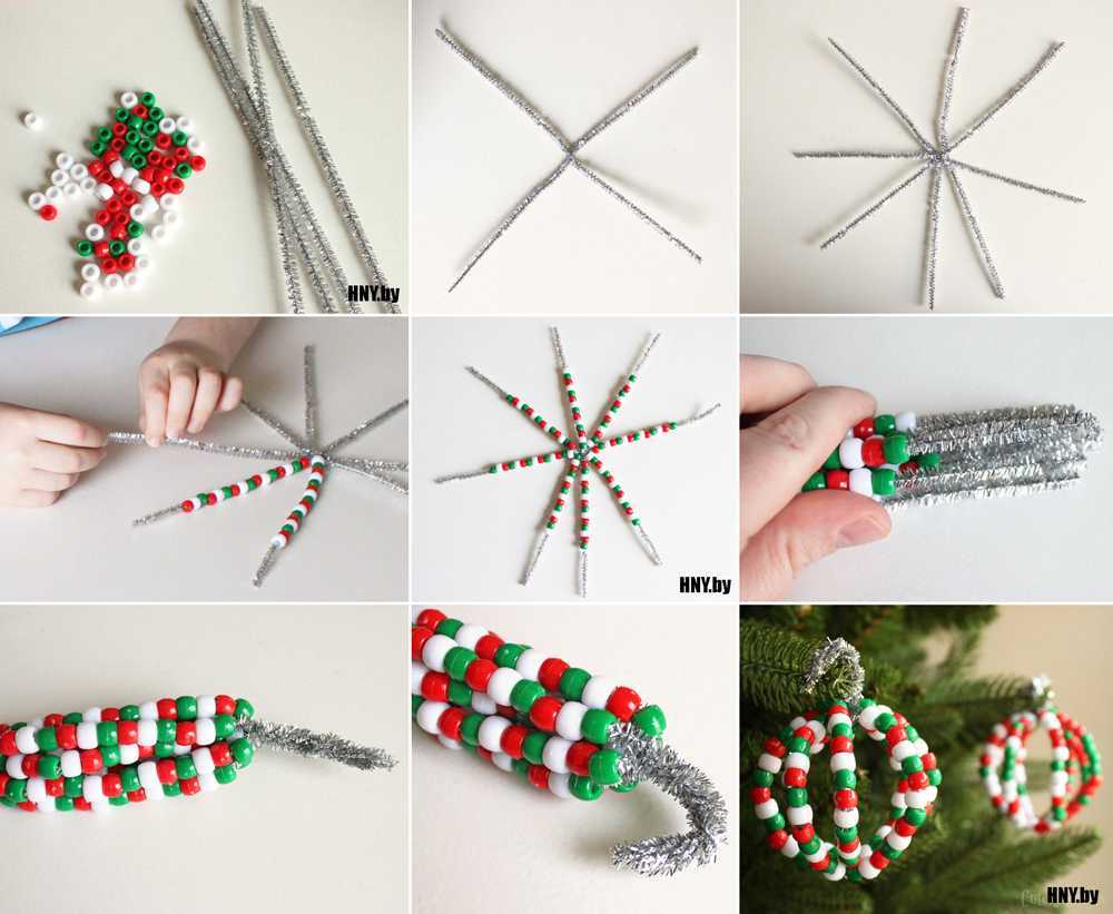 На зеленую елочку можно приклеить стразы или бусинки. Прямо на краску. Сверху покрыть бесцветным лаком. Так новогоднее украшение дольше сохранится. Из макарон можно сделать не только елку, но и , и другие новогодние украшения. Для этого стоит купить несколько видов изделий и пофантазировать. Дайте волю детворе! Вы увидите, что из этого материала можно построить абсолютно все.