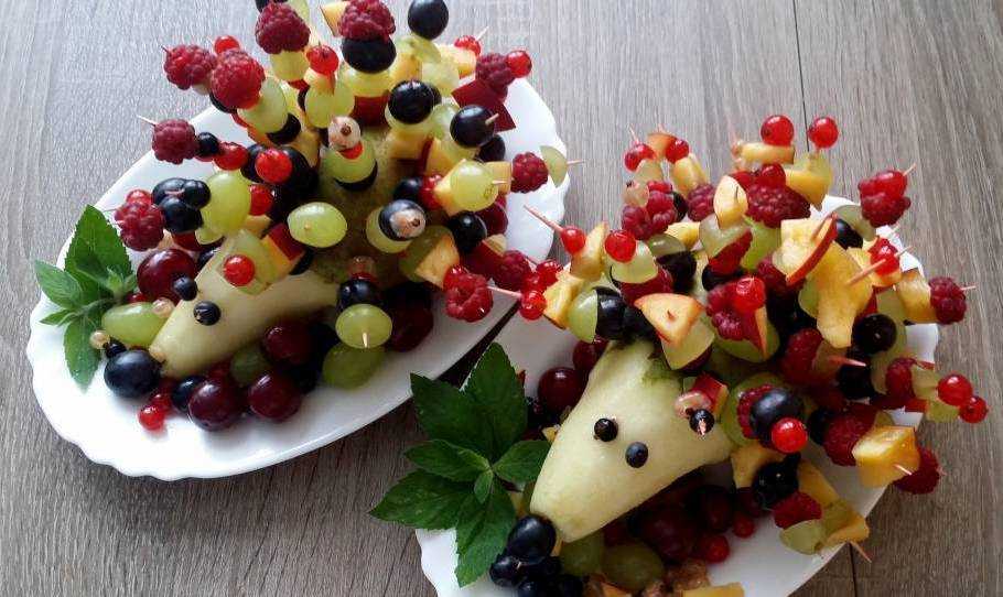 Для приготовления блюд можно брать рыбку, мясо, колбасы, сыры, ветчину, куриное филе, овощную нарезку и фрукты. Сладкие закуски – это обязательная часть праздничного меню для детей. Уж такие блюда малыши никогда не оставят без внимания. Даже, если ребенок не ест какой-то фрукт или ягоды, то в красивом оформлении он наверняка даже не заметит, что съел нелюбимый, но полезный продукт. К тому же фруктовые десерты в таком исполнении намного полезнее конфет и шоколадок.