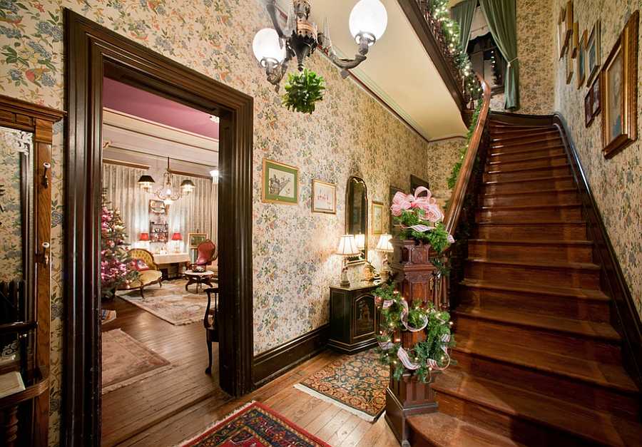 Идея состоит в том, чтобы привнести рождественский дух в уже существующую палитру и, возможно, расширить её. Современная лестница будет выглядеть великолепно и без шикарных гирлянд.