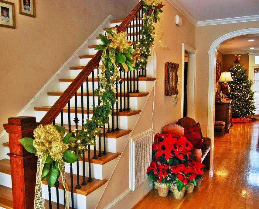 Праздничное оформление простой лестницы