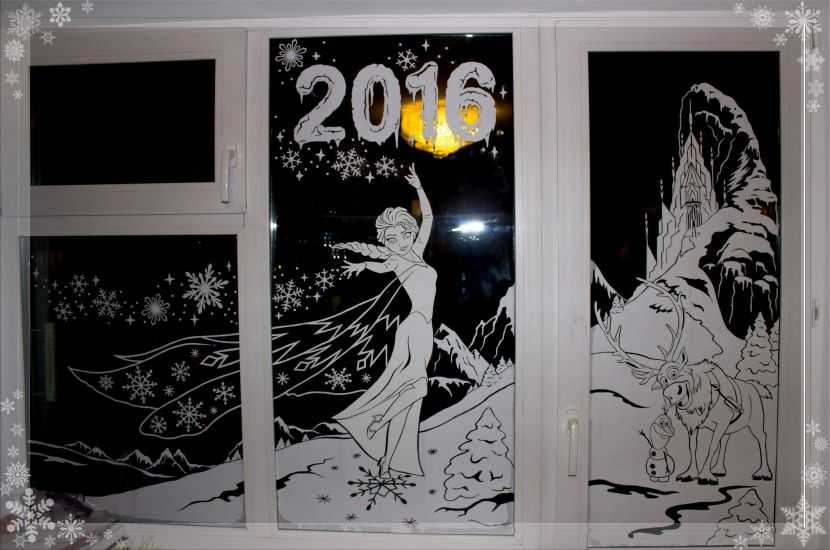 Сказочные герои остаются фаворитами на Новый год. Новогодние трафареты можно изготовить в оригинальном дизайне, изображающим героев мультфильма “Холодное сердце”, оленей, Снеговика Олафа и так далее. Такой Новый год точно запомнится как взрослым, так и детям. Кстати, маленькие члены семьи тоже могут принимать участие в изготовлении декора.