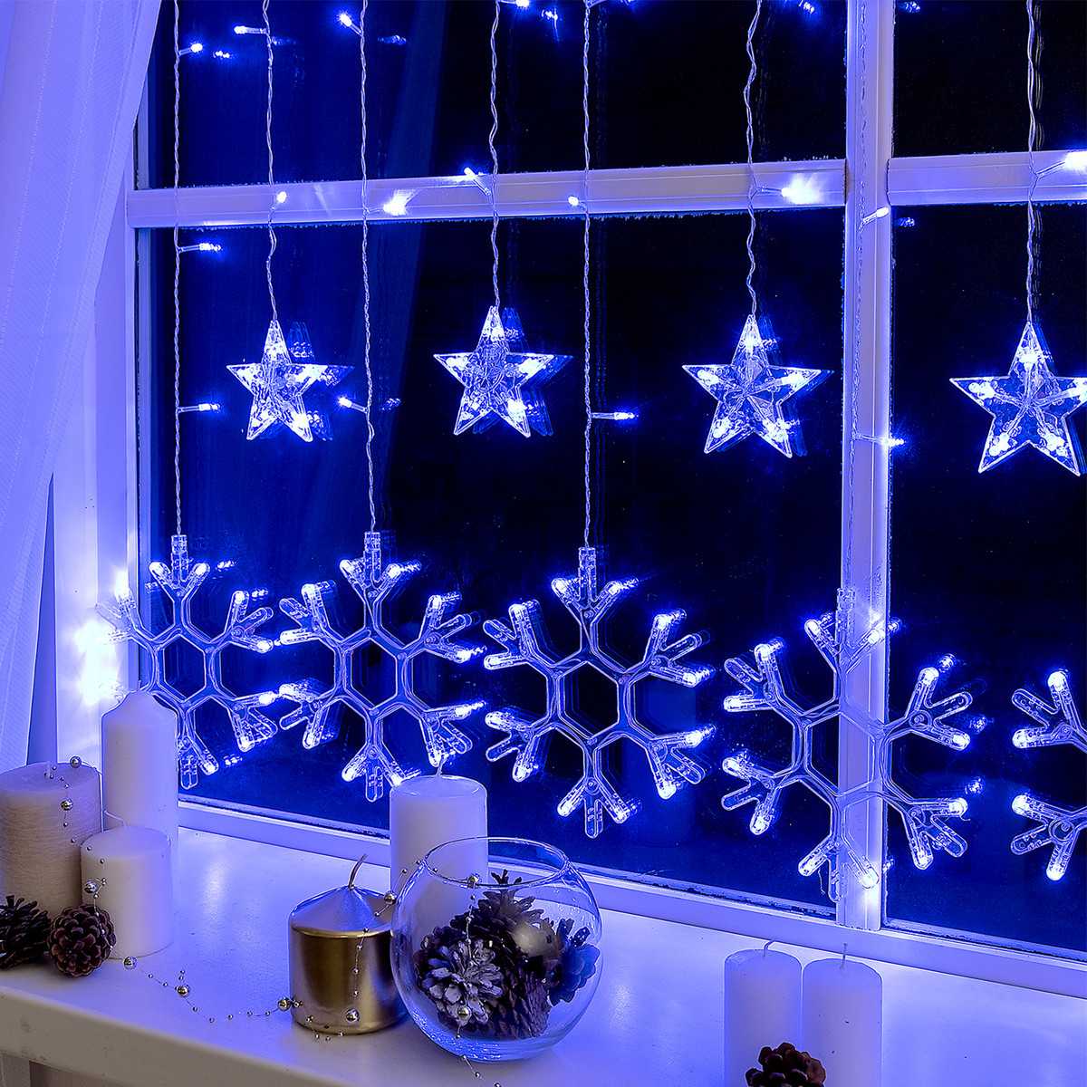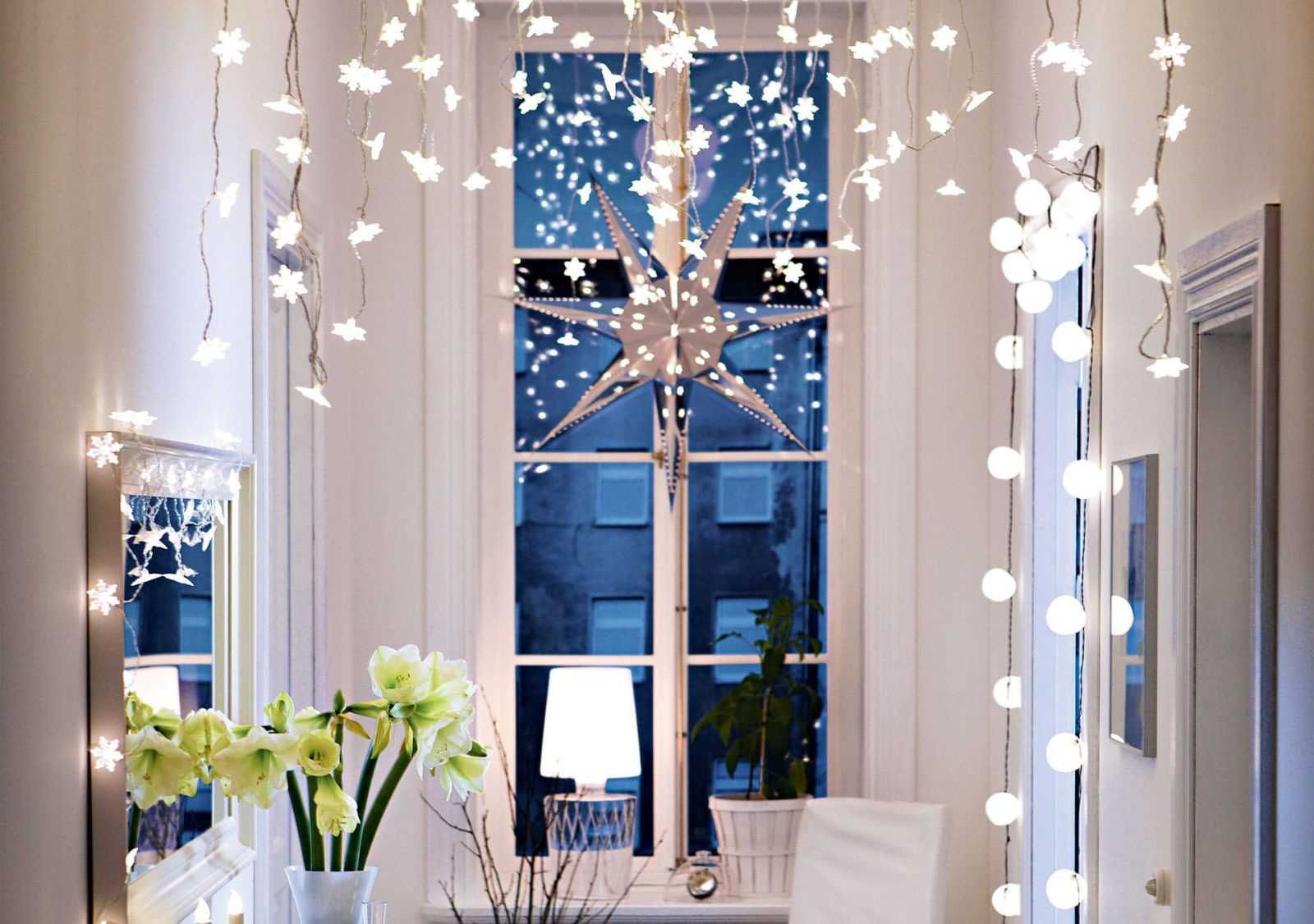 Самое легкое, что можно придумать и быстро воплотить в жизнь – украшение окон новогодними светодиодными гирляндами, которые могут быть одноцветными/разноцветными. Среди вариантов гирлянд, пользующихся неизменным спросом у россиян для оформления оконных проемов, лидируют: