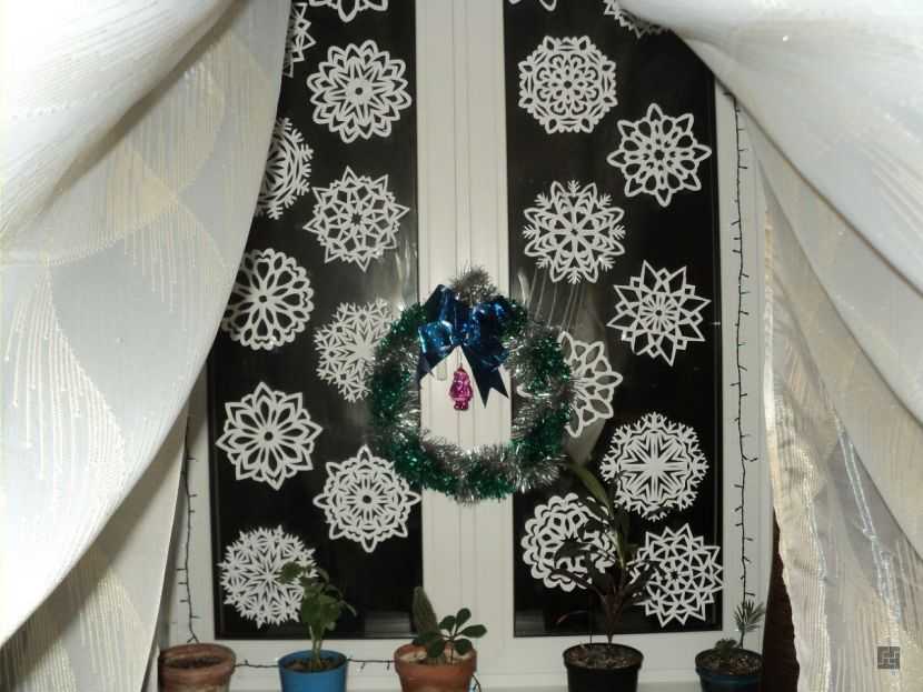 Самым бюджетным, но от того не менее нарядным вариантом, является украшение окошек бумажными снежинками. Для этого понадобятся только ножницы, белая бумага или серебристая фольга и ваша фантазия. Вариаций таких снежинок можно придумать множество и сделать либо абсолютно различные элементы, либо композицию в одном стиле. Из разноцветной бумаги также можно сделать шары оригами, фигурки для пестрых гирлянд, прочие поделки, используя лишь клей и ножницы.
