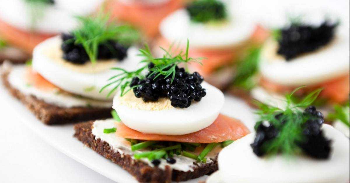 Закусочные бутерброды с рыбой и красной икрой в тарталетках