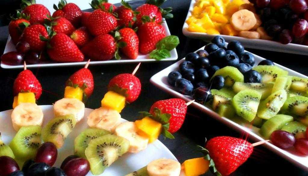 Для приготовления блюд можно брать рыбку, мясо, колбасы, сыры, ветчину, куриное филе, овощную нарезку и фрукты. Сладкие закуски – это обязательная часть праздничного меню для детей. Уж такие блюда малыши никогда не оставят без внимания. Даже, если ребенок не ест какой-то фрукт или ягоды, то в красивом оформлении он наверняка даже не заметит, что съел нелюбимый, но полезный продукт. К тому же фруктовые десерты в таком исполнении намного полезнее конфет и шоколадок.