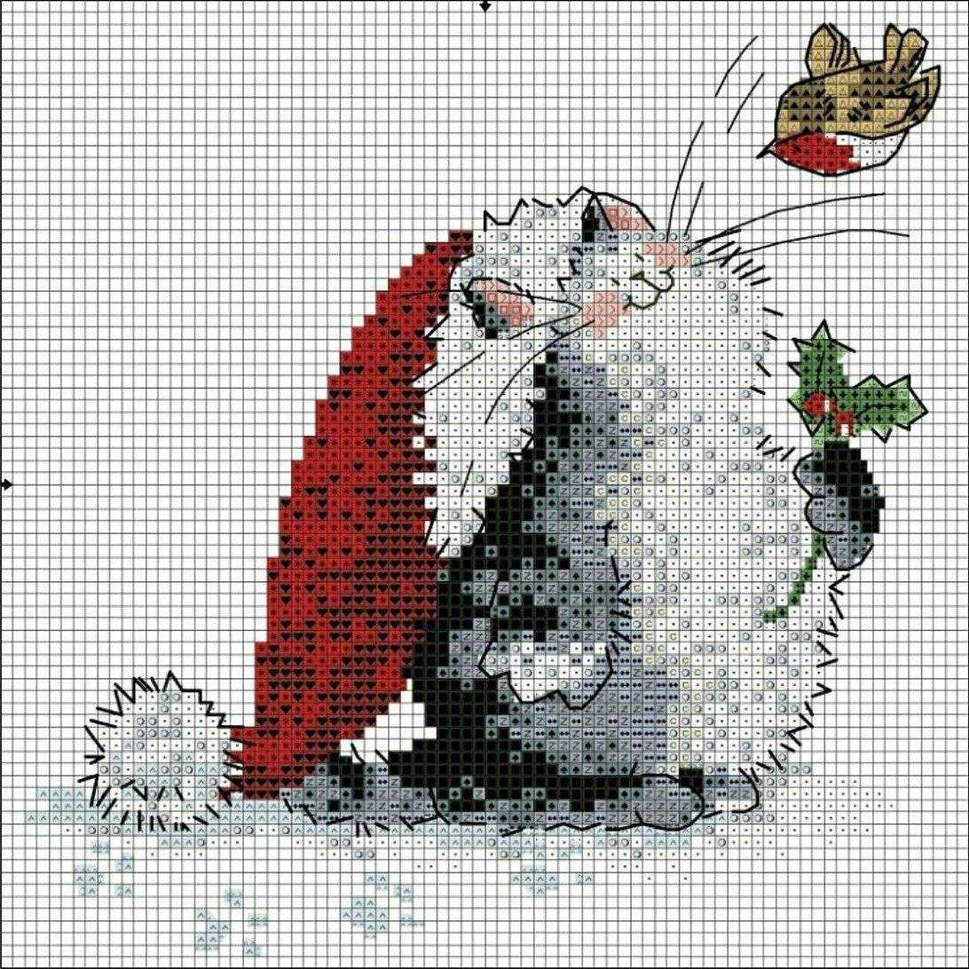 Вышивка котят может стать подарком. Самый семейный праздник по праву — Новый год, поэтому рекомендуется присмотреться к новогодним схемам. Котята на изображении могут быть мультяшными или реалистичными. Вышитое изображение дополняют шариками или красными шапочками. Есть варианты, где животные находятся на заснеженной крыше у печной трубы, а также под елкой или с мандаринами.