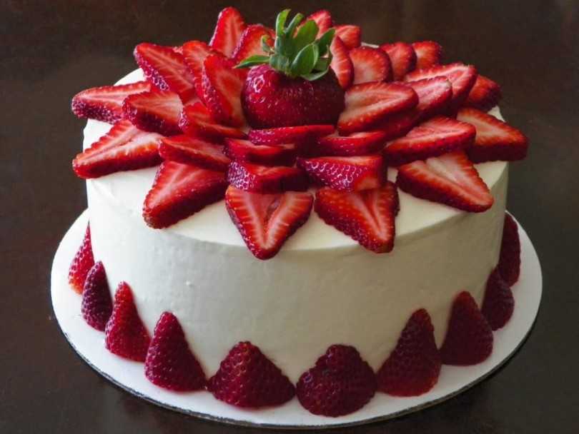 Украсить торт клубникой можно простым способом: нарезать ягоду небольшими частями и сформировать соцветие, после чего украсить кремом или шоколадной глазурью.