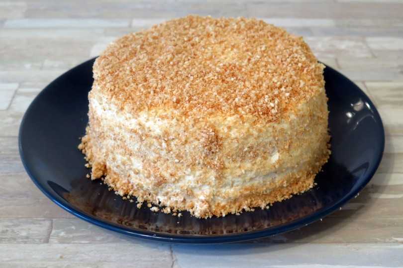 - Коржи пропитать заранее подготовленным сладким чаем. Чай можно сделать крепким, тогда торт будет вкусней.