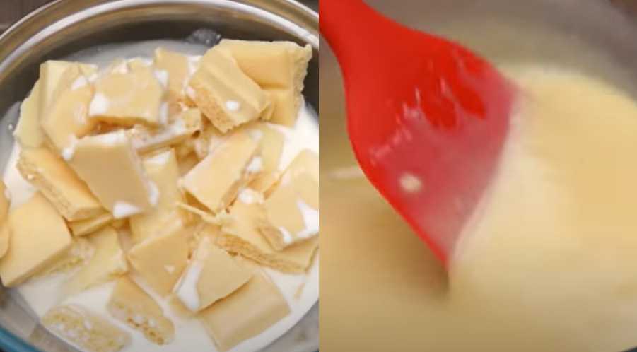 - Эту смесь сливаем в сотейник и ставим на средний огонь.