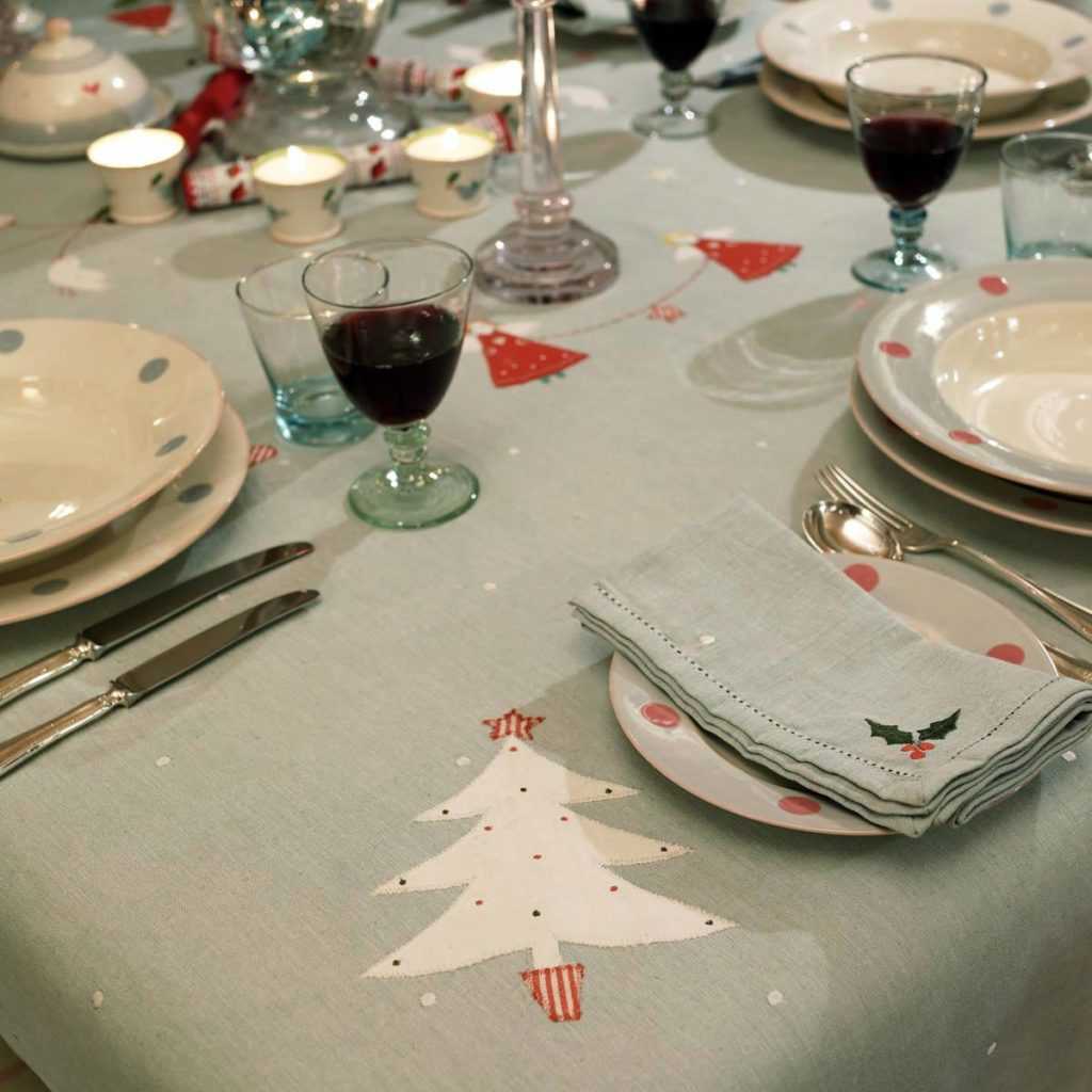 Скатерть с рисунком требует сдержанности в цвете посуды. Если этот момент не учесть, то общий вид будет перегружен украшениями.