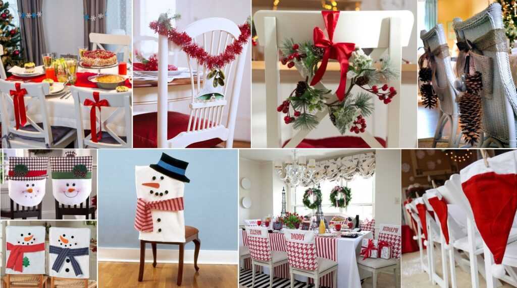 Декораторы любят развешивать украшения над столешницей. Для этого используют электрические гирлянды, венки из веток хвойных деревьев. Только нужно участь рост самого высокого гостя, чтобы он ненароком не зацепил всю эту красоту.