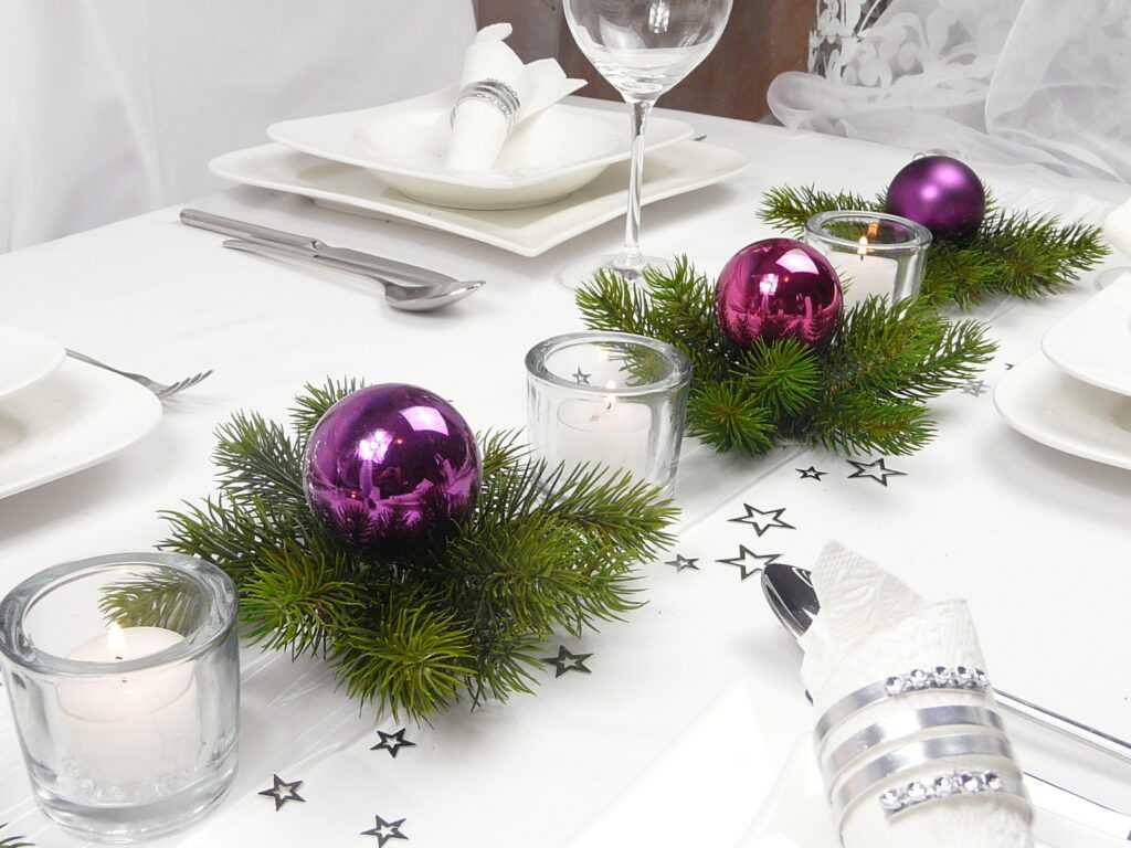 Никогда не теряет своей популярности. Белая скатерть, серебристые вилки, ложки и ножи, еловые веточки и ароматные оранжевые мандарины – это уже классика, которая придется всем по душе.