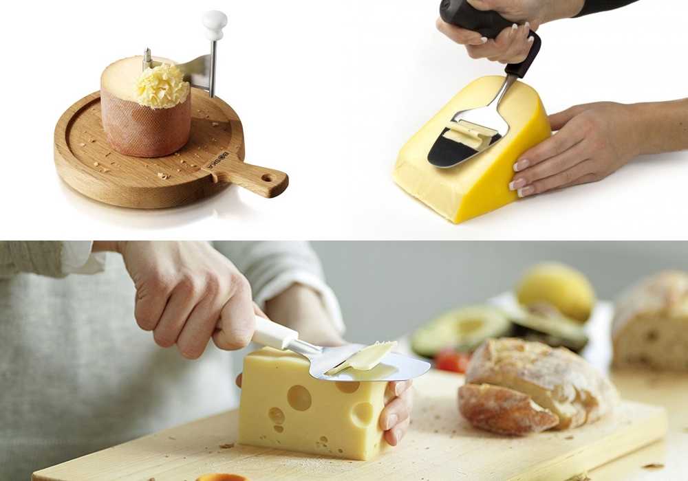 Чтобы нарезать сыр быстро и удобно, рекомендуется использовать специальные ножи-струны или ножи с краями-зубцами и пустотами.