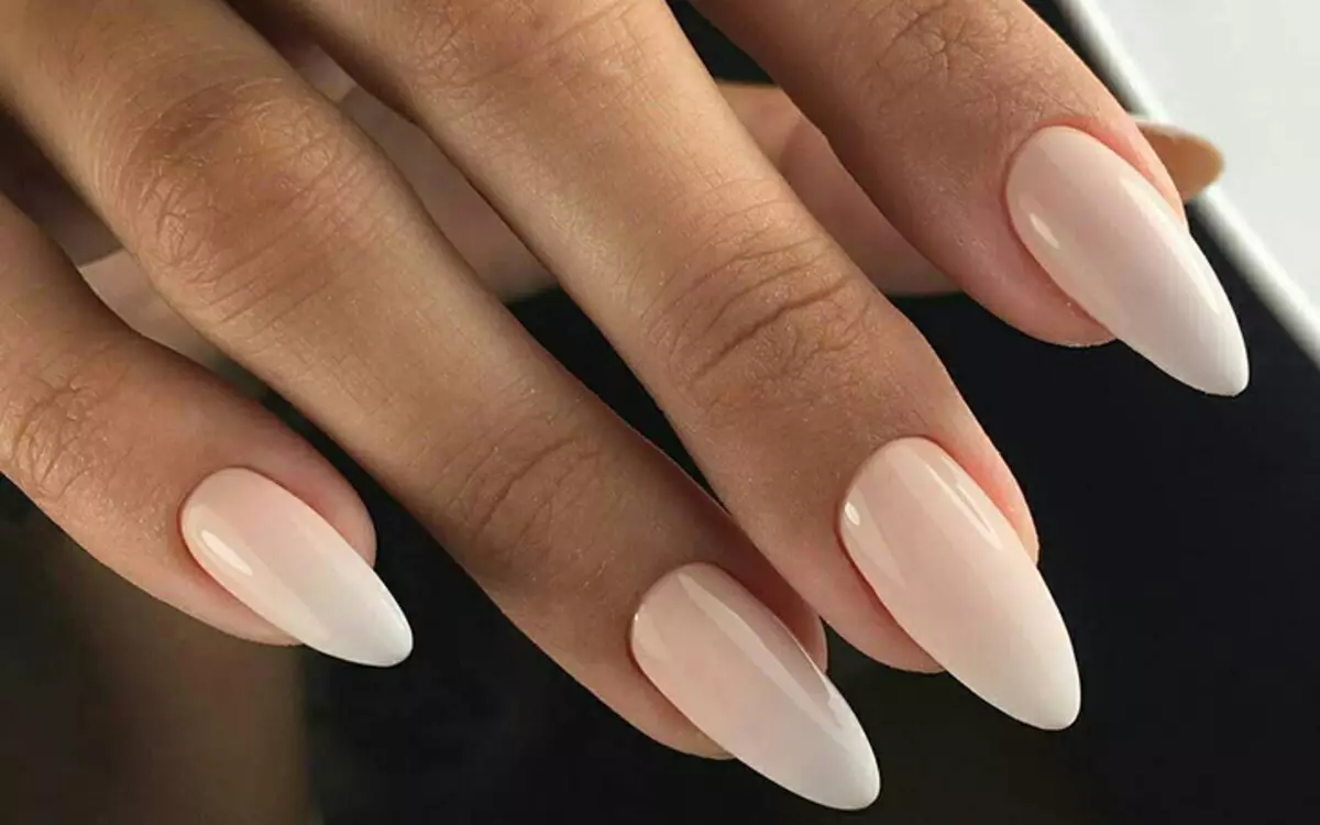 Форма миндаль является одной из самых популярных форм ногтей в 2023 году, и молочный маникюр прекрасно смотрится на них.