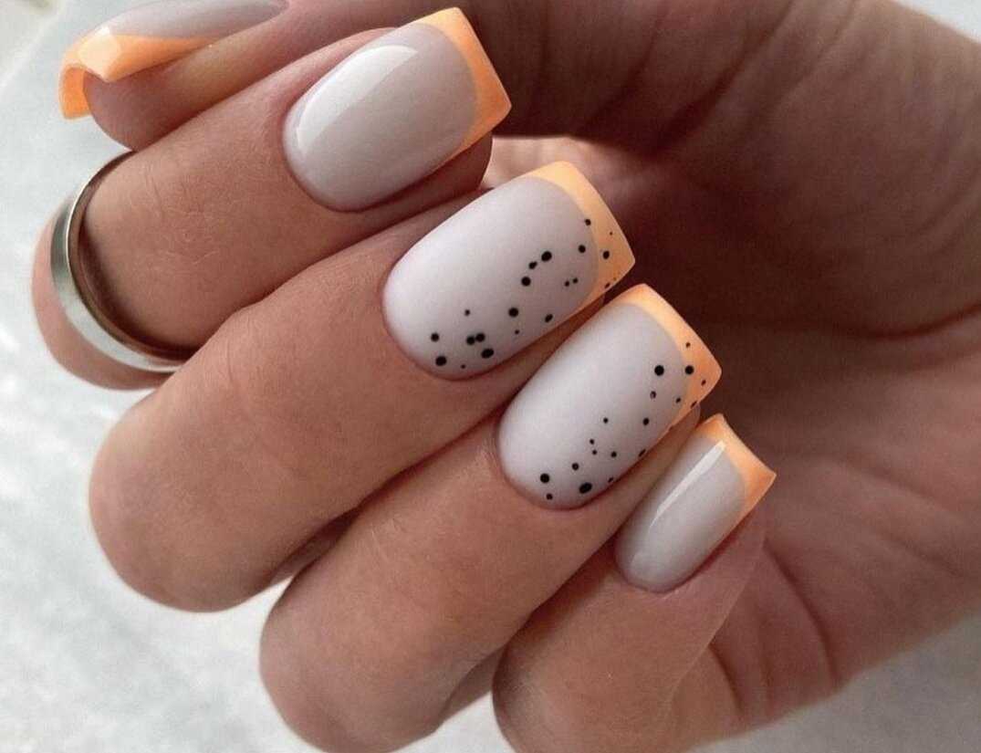- В завершение покрыть элегантный дизайн ногтей молочного цвета финишем и хорошенько просушить.