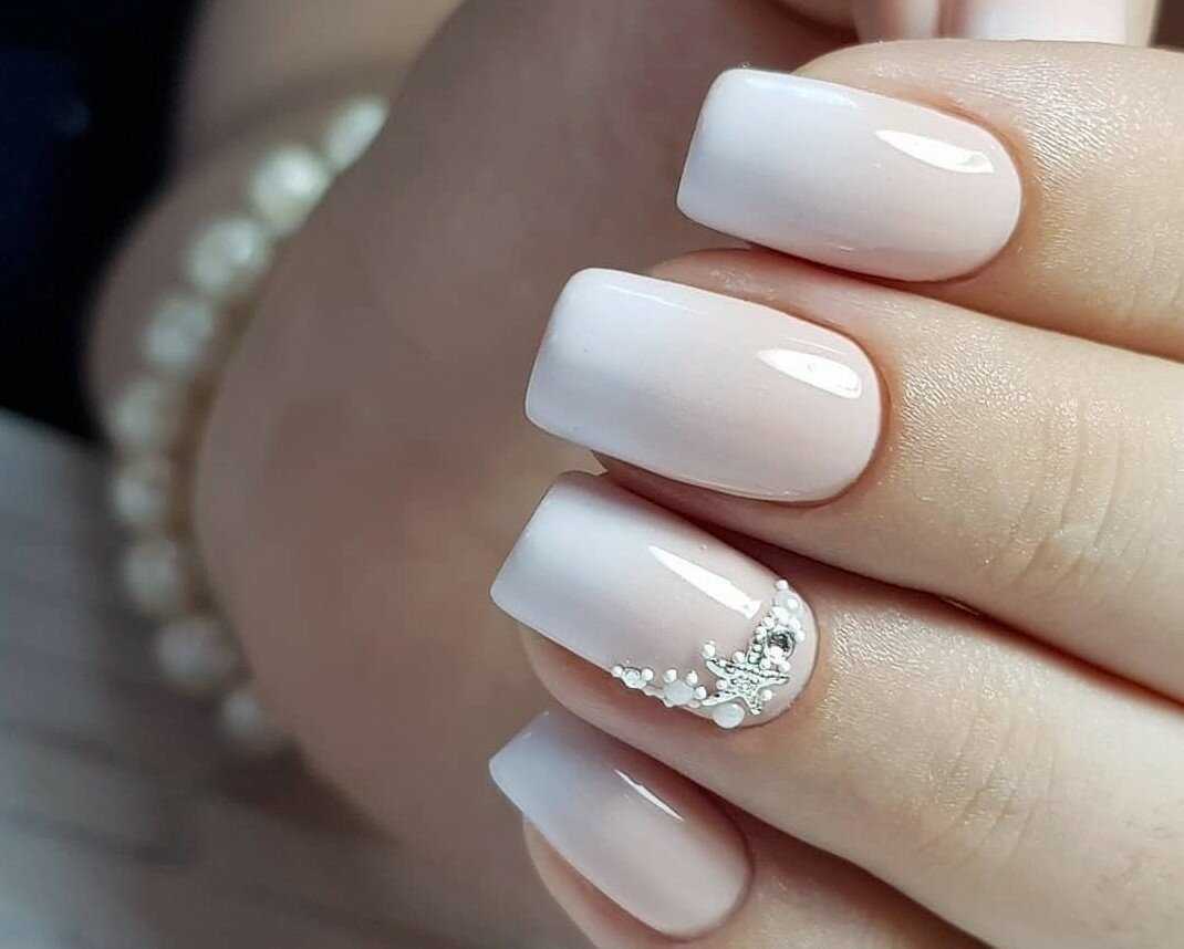 Молочный маникюр также может быть выполнен на квадратных ногтях, но в этом случае рекомендуется сделать их немного более короткими, чтобы не создавать впечатление тяжелых ногтей.