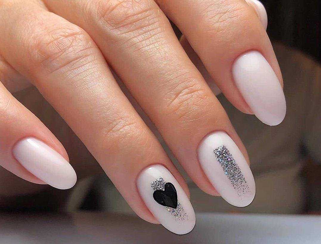 Можно добавить к нему в пару черный такой же текстуры или сочетать с непокрашенными участками, или нарисовать на нем геометрические или кружевные узоры. Матовый гармонично дополняется стразами, полосками глиттера.