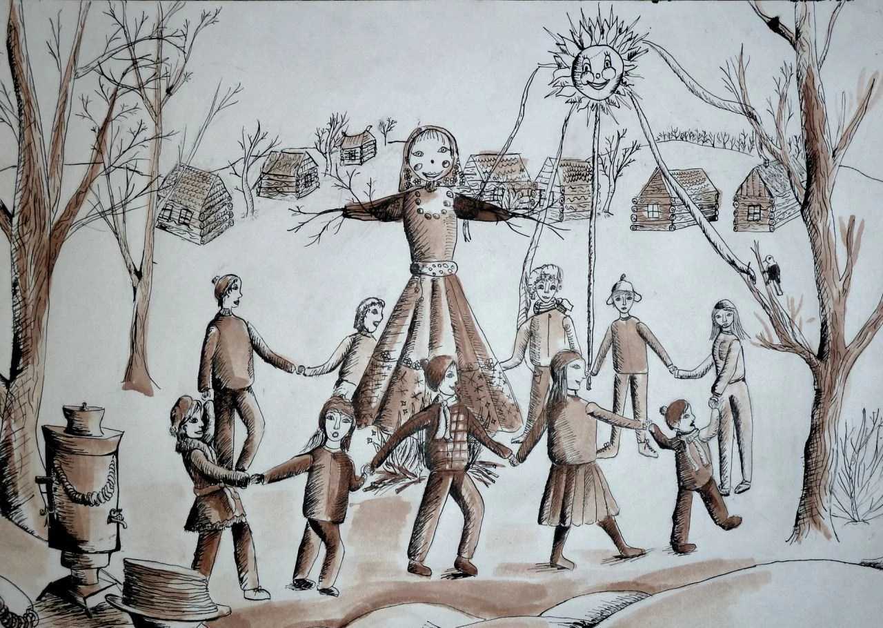 Рисуем масленицу для продвинутых: идея рисунка для детей 4 и 5 классов