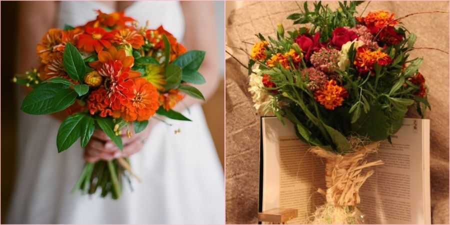 Эти растения цветут очень продолжительное время, начиная с ранней весны и до самых первых холодов. Потому подойдут в качестве свадебного букета невесте на любой осенний месяц. Их принято считать олицетворением чистых помыслов, преданности, глубоких чувств и уважения.