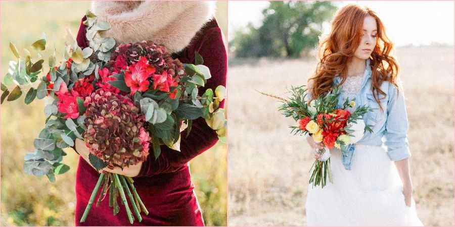 Если церемония вашей свадьбы приходится на лето 2022 2023, тогда мы рекомендуем вам собрать букет из самых ярких и богатых цветочных оттенков сезона. В вашем распоряжении окажутся всевозможные герберы, хризантемы, фрезии и каллы. У вас есть потрясающая возможность реализовать все свои творческие порывы в одном лишь букете! Единственный нюанс, о котором не стоит забывать, — баланс красного, зеленого и оранжевого или желтого цветов. Если вы переусердствуете с одним из оттенков, есть риск, что букет будет незаметен на фото во время свадебной фотосессии на природе.