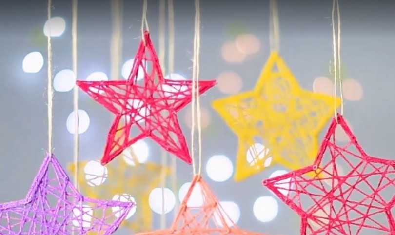И видеоролик с пошаговым руководством. Размер изделий можно выбирать самостоятельно – большие, наоборот, маленькие звездочки на нитке подвесить как елочные игрушки или прикрепить в нужное место.
