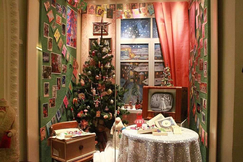 Времена изменились, и современные дети даже не понимают, что такое СССР. В качестве эксперимента можно оформить квартиру в стиле этой страны. Для начала можно отыскать старый проигрыватель, и разместить его в комнате. Елка должна быть натуральной, а игрушки в основном были выполнены из стекла. При желании эти игрушки можно найти на чердаках или купить на барахолках. Обязательно следует тематически оформить стол, граненные стаканы в сочетании с хрустальными бокалами, тарелки в цветочек. И, конечно же, соответствующая кухня – салат оливье, бутерброды со шпротами, домашний компот.