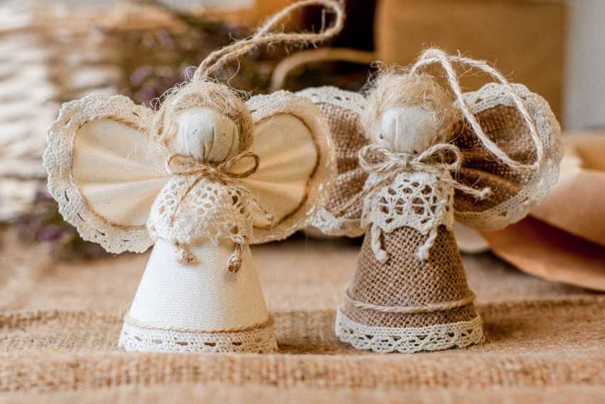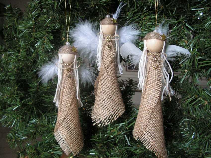 Новогодние поделки из мешковины прекрасно украсят любую елку. Самое простое украшение для елочки – это ангелочки.