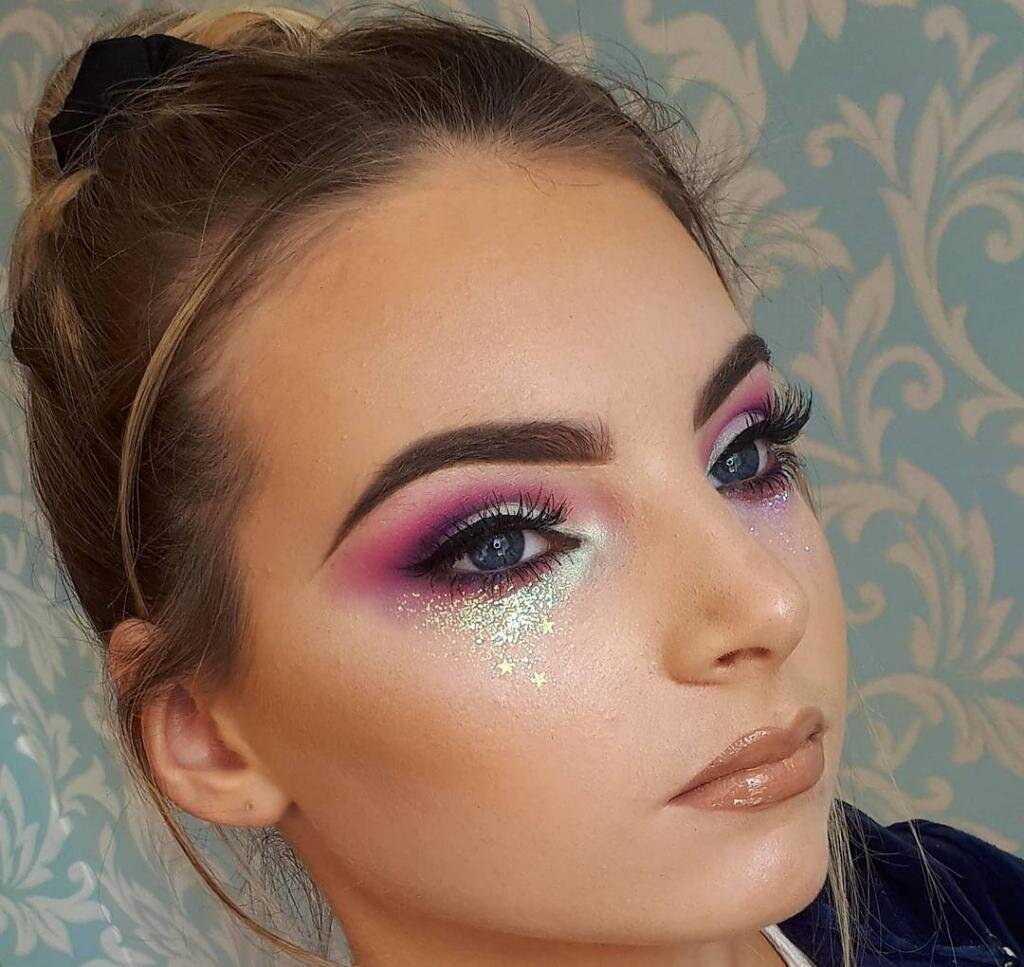 - с помощью блесток и стразов. Этот способ лучше оставить для фотосессий и особых праздников. Во-первых, не хочется съесть все декорации, а во-вторых такой макияж требует поправок.