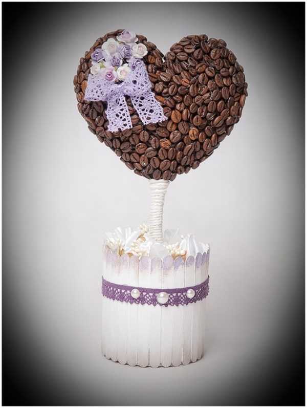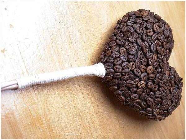 Сердце, сделанное своими руками из кофейных зерен – это прекрасный подарок для любимого человека. Из картона вырезаем два одинаковых сердца. Проволоки плотно обматываем бумагой и приклеиваем их к картонному сердцу.