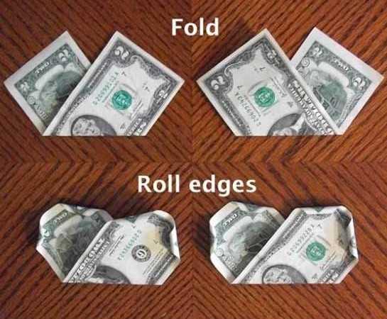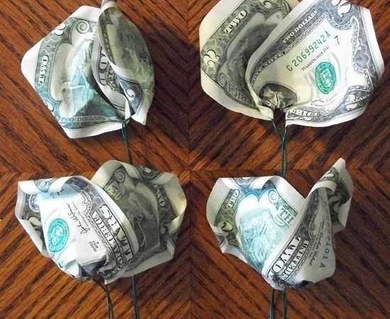 Тем самым, вы подарите не только деньги, но и внимание. Для создания денежной розы, складываем одну банкноту пополам и загибаем края в разные стороны