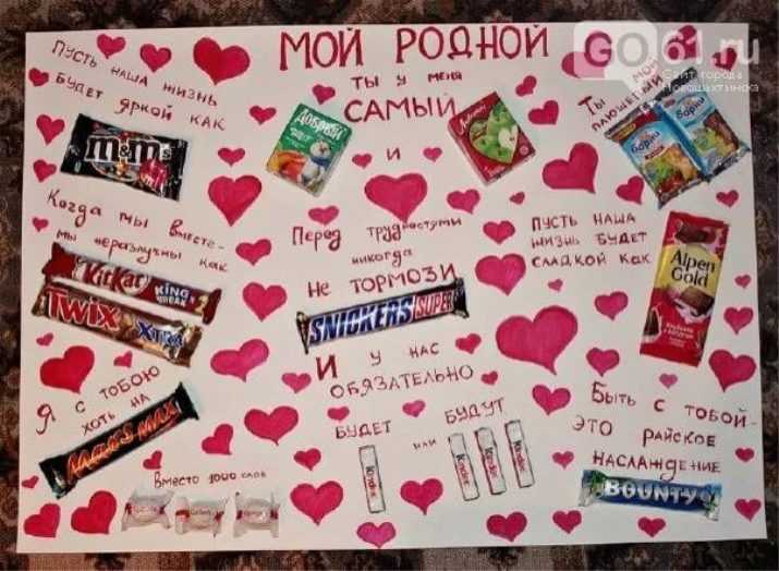 Не забывайте и о признании в любви. Оно одинаково красиво звучит на всех языках мира. Не отказывайте себе в удовольствии использовать все знакомые языки, чтобы написать это послание своей второй половинке. Это будет смотреться предельно красиво и элегантно. Разумеется, все это можно сделать и с помощью современной компьютерной техники. Какой вариант предпочесть, каждый сам решает для себя. Не у каждого человека имеется талант и художественное мастерство. Благодаря хорошему принтеру можно отчетливо распечатать даже фотографии. Классный и оригинальный подарок на 14 февраля любимому.