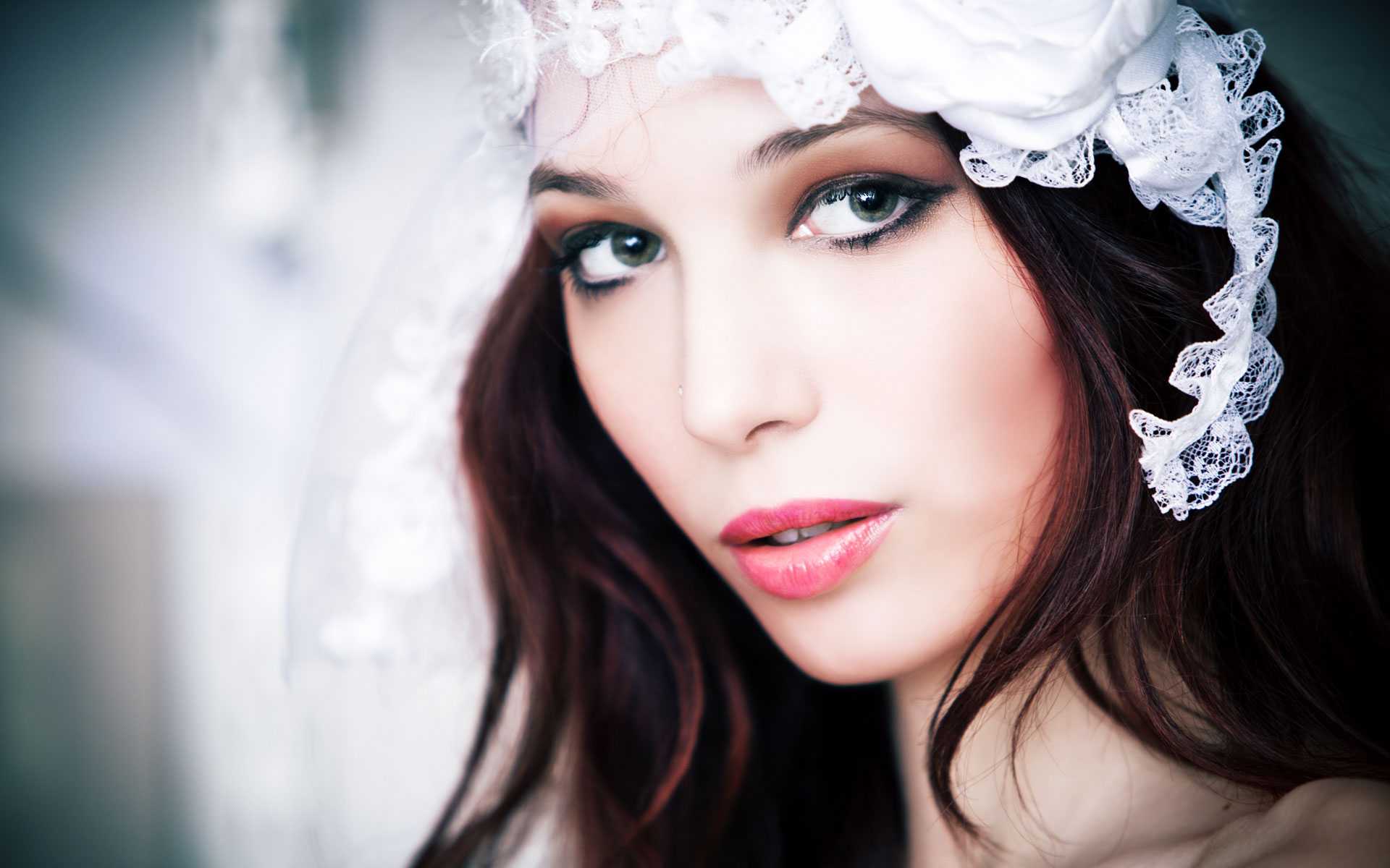 А вот деликатная асимметричная чёлка в дуэте с гладкой или простой причёской – локонами, прямыми распущенными прядями, мальвинкой – позволяют выбрать многослойный, пышный, украшенный вышивкой или кружевом аксессуар, добавляющий торжественности.