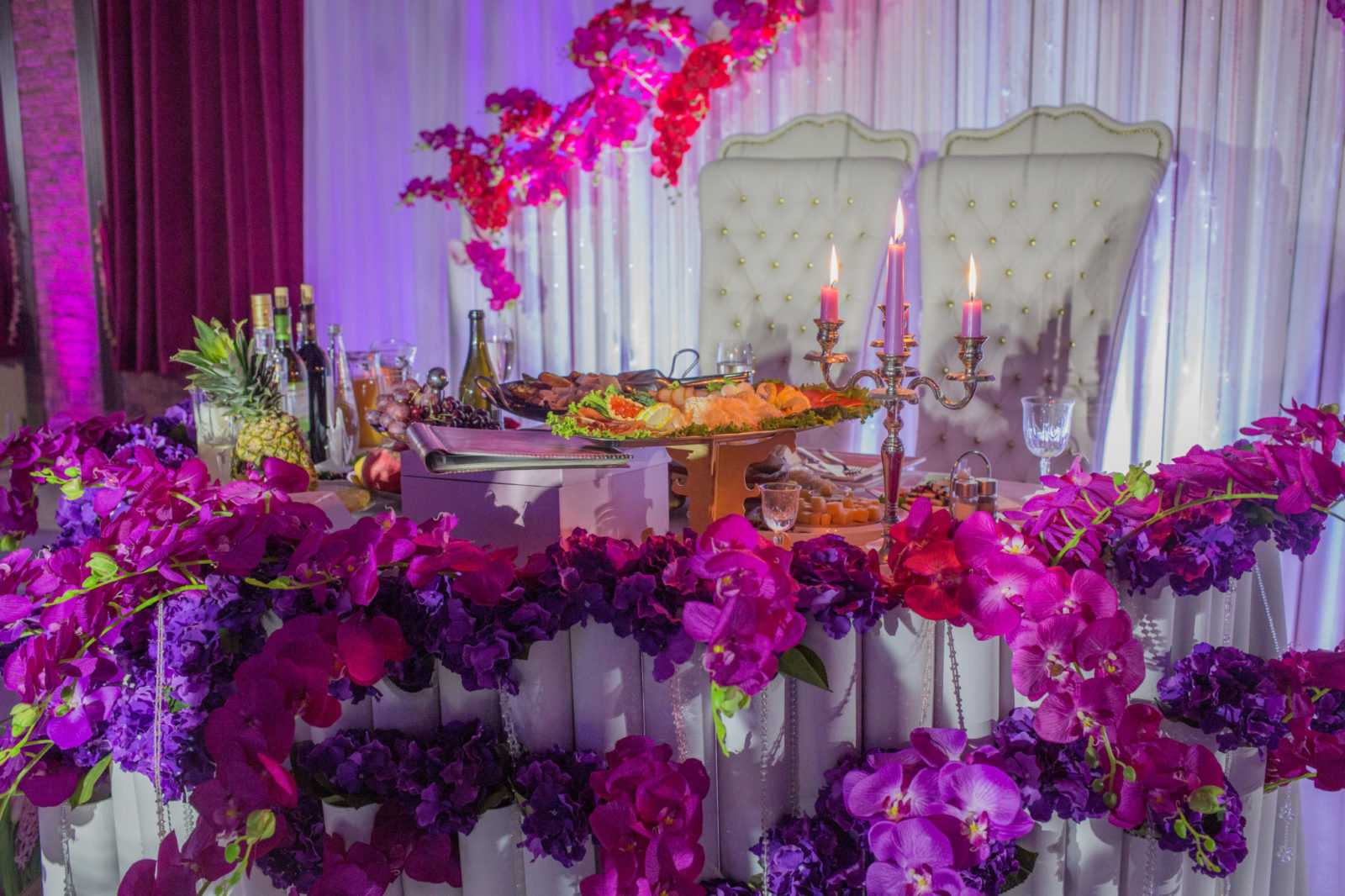 обеспечен: тематический задник, богатые драпировки фасадной части стола,