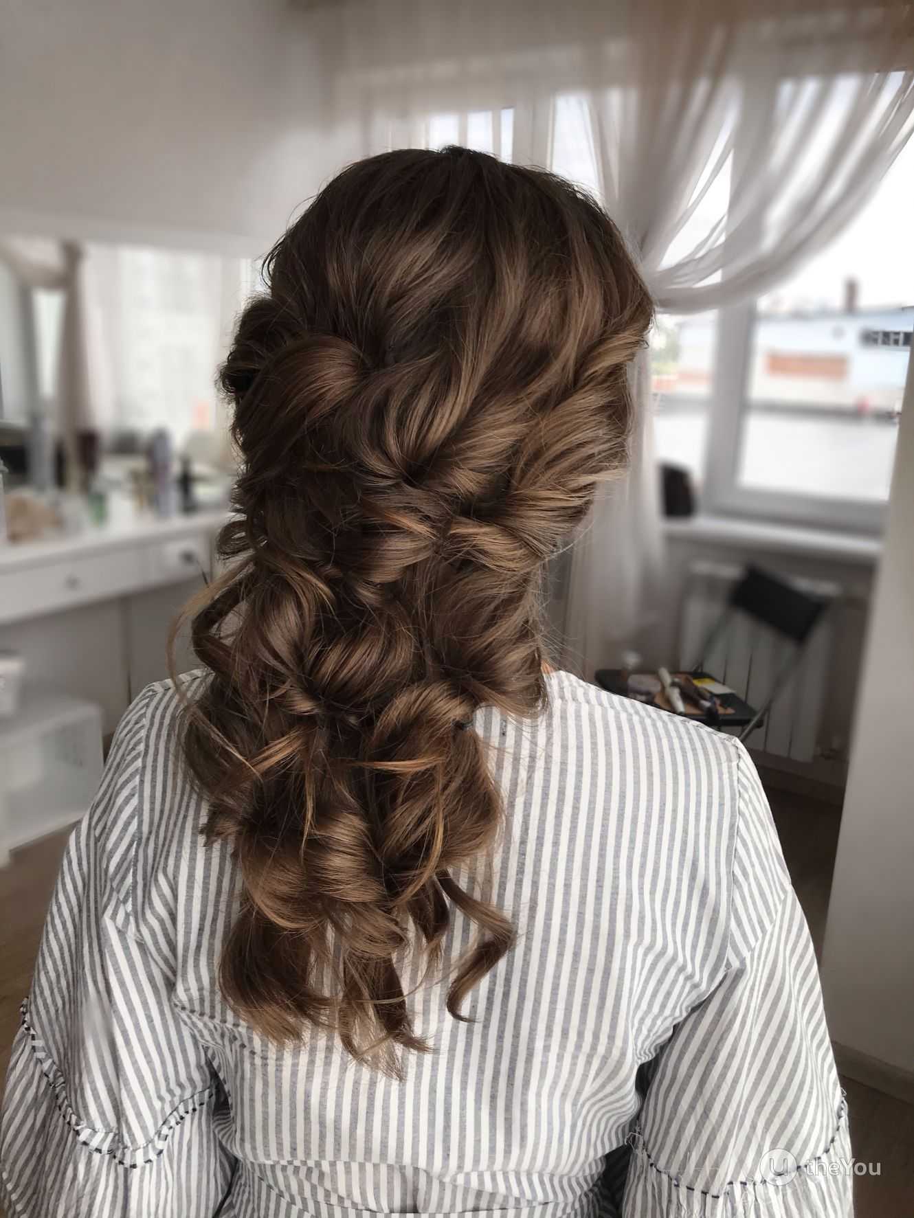 Укладку зафиксируйте лаком. Оставшиеся свободными пряди завейте в красивые локоны.