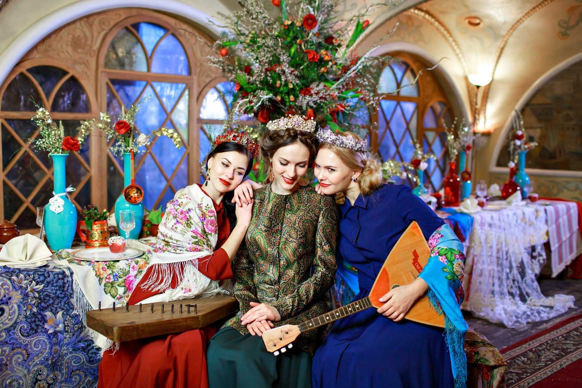 Самая интересная часть вечера. Современному человеку будет непривычно в русских народных костюмах, но зато это новые эмоции и опыт. Подобрать подходящий наряд может быть не так-то просто, но помогут швейная машинка или прокаты костюмов.