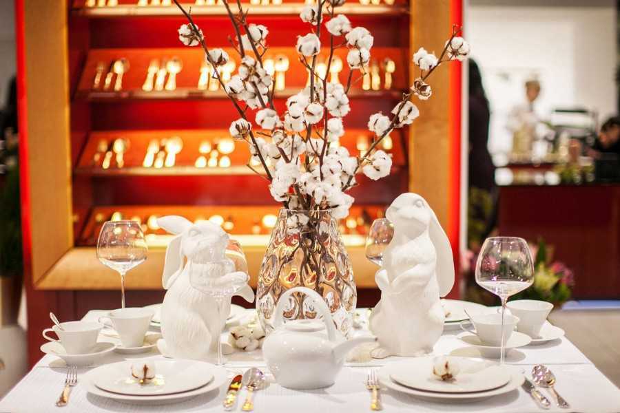В ресторане премиум класса, подразумевающем уникальность интерьера и обслуживания, столы сервируются фарфоровой посудой, белый цвет которой идеален.