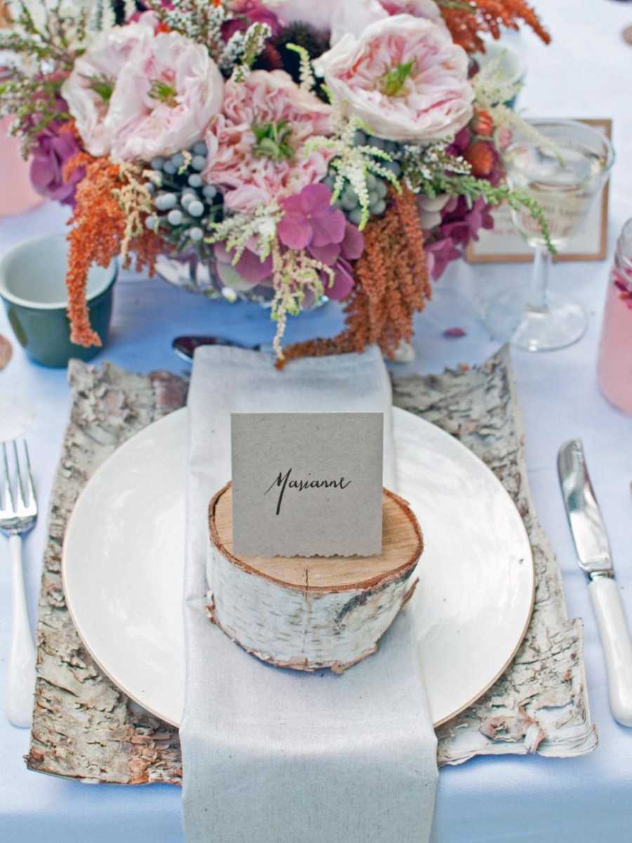 Еще одна интересная идея, которая может здорово выручить на праздновании юбилея в домашних условиях — именные карточки на тарелках. Кому из нас не знакома проблема с рассадкой большого количества гостей? Решите ее, заказав необычные салфетки с именами (два в одном никогда не выйдет из моды) или же установив картонные открытки