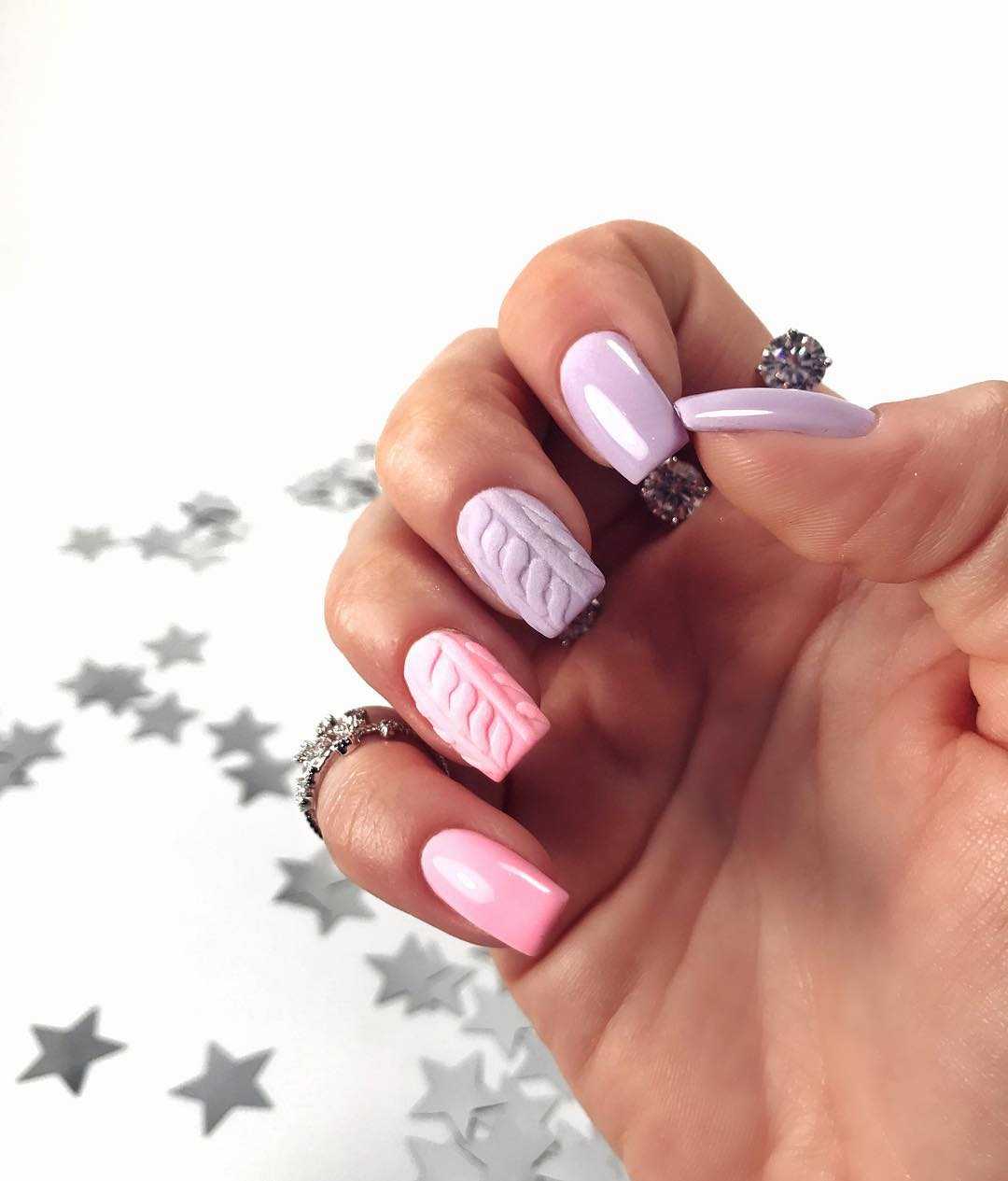 - Вязаная фактура — как еле заметные, так и с объемными косами и лепкой.