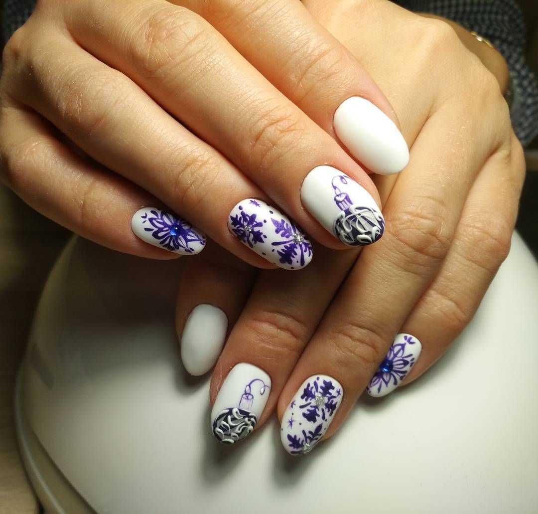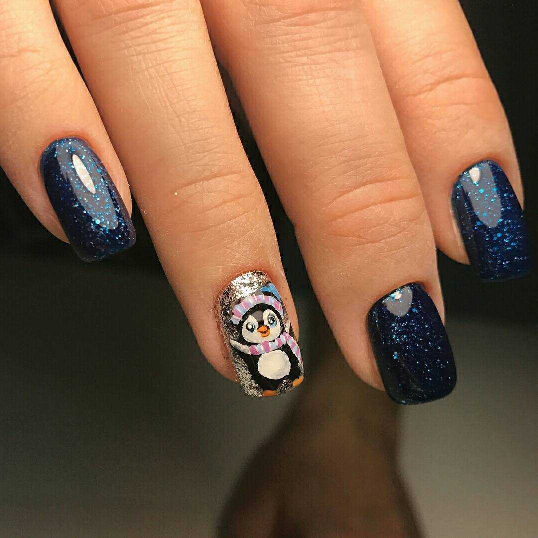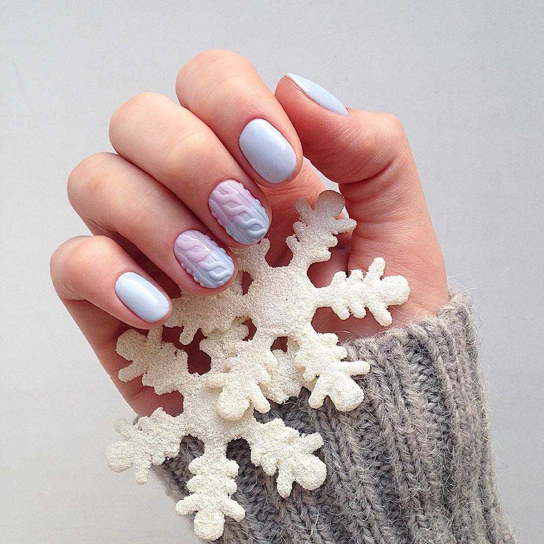 Тем более скромность в дизайне следует соблюдать на коротких ноготках. Достаточно пары снежинок на одной руке, а если и расписной дизайн, то в светлой, свойственной зиме палитре.