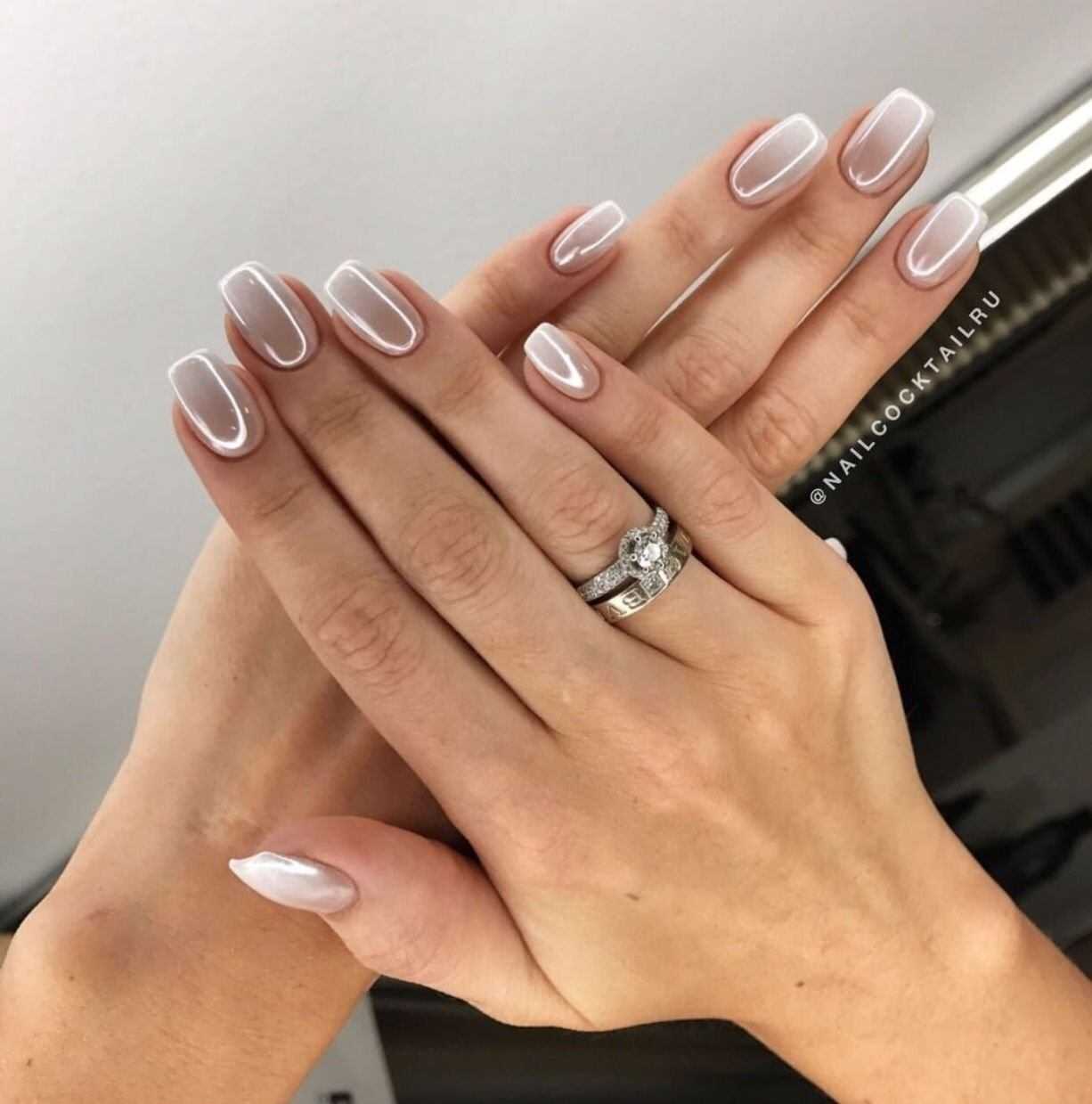 Светлые оттенки на коротких ногтях смотрятся особенно удачно, так как способствуют тому, что и ногти и пальцы кажутся длиннее