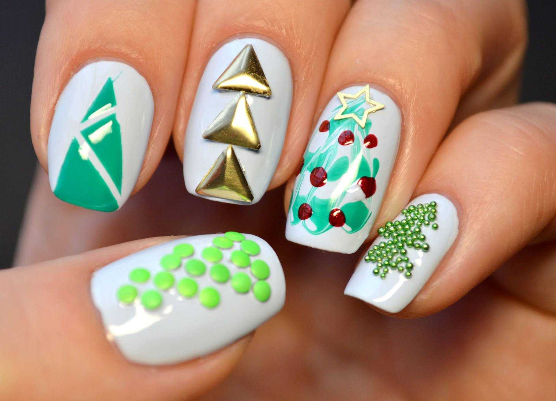 Маникюр зеленым лаком на Новый год
