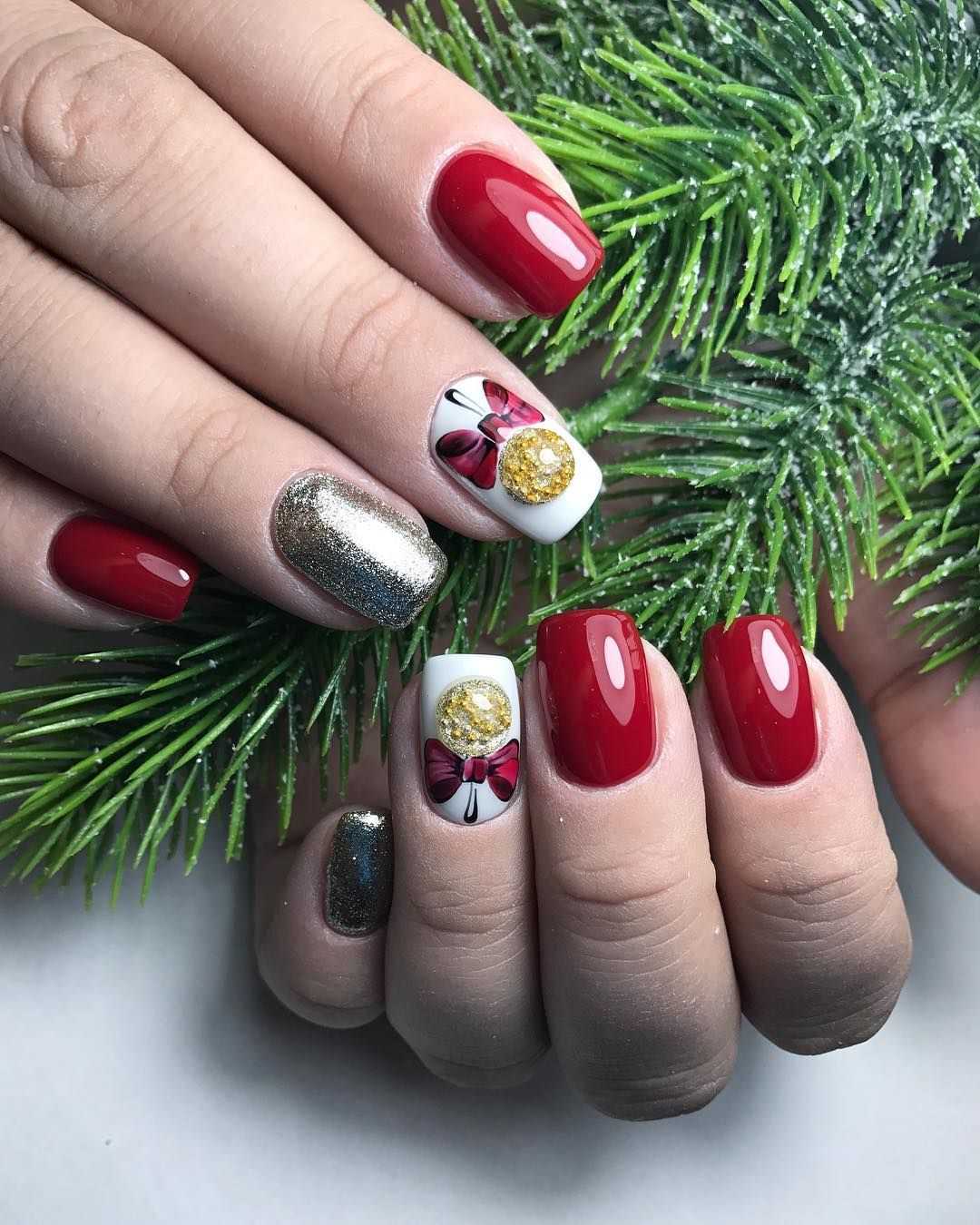 Новогодний маникюр на короткие ногти