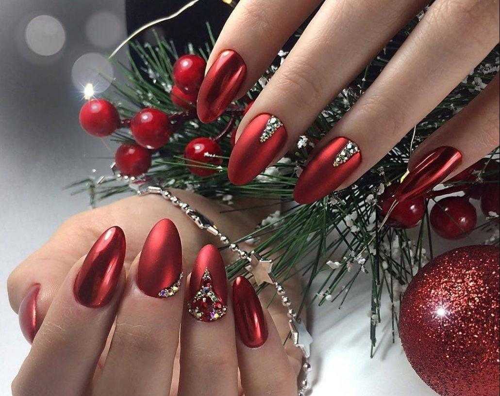 Длинные красные ногти на НГ