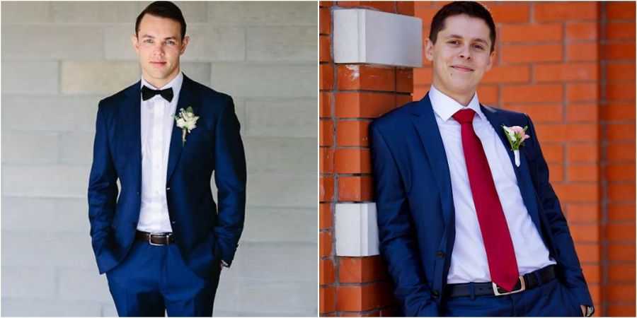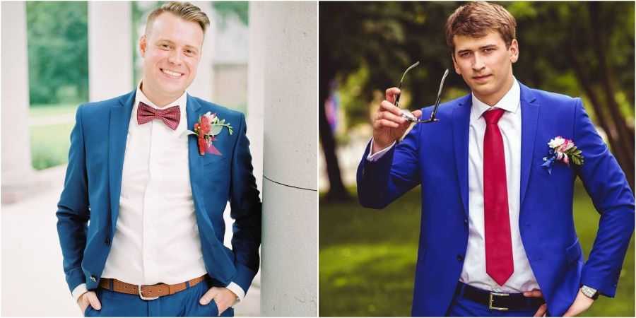 Так, к нему важно приобрести подходящие аксессуары, ведь без них образ жениха в костюме в синем не будет законченным