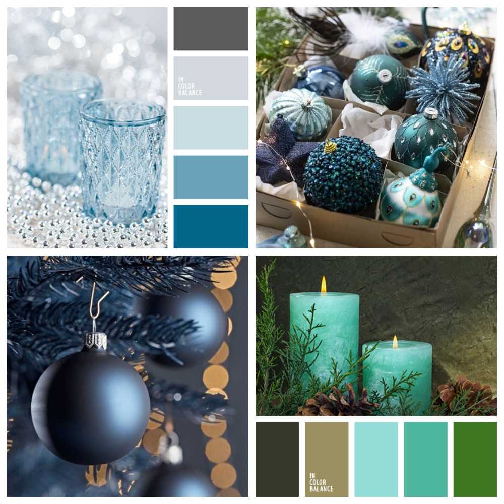 Голубая и синяя гамма также должна быть отражена в интерьере. В подобных тонах можно украсить елку – они неплохо сочетаются с темно-зеленой расцветкой хвои. Чтобы дерево не выглядело слишком строго и холодно, можно добавить украшений в золотых и серебряных тонах, также уместных на празднике и симпатичных символу года.