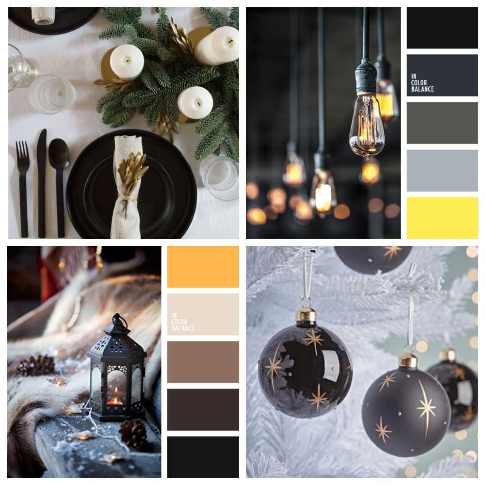 Черный – один из ключевых цветов наступающего года – кажется недостаточно праздничным лишь на первый взгляд. Все дело в том, с чем его сочетать. Стильно и торжественно выглядит черный фон, украшенный золотым и серебряным принтом. Именно такое цветовое решение подойдет для некоторых элементов декора.
